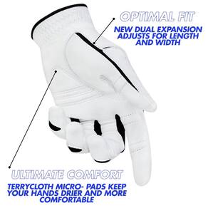 Luva de golfe masculina StableGrip com NaturalFit 2.0 com polegar de expansão dupla para melhor ajuste - couro Cabretta Premium... (branco, GG, esquerdo)