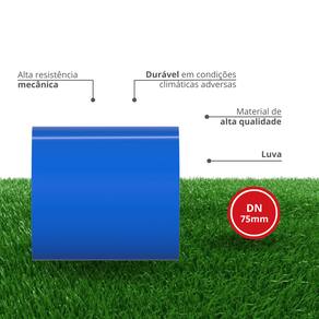 📍 Modelo: Luva Reforçada Soldável. ? Linha: Irrigação 🛠? Material: PVC Azul de Alta Qualidade 📐 Bitola: – (ESCOLHER NO ANÚNCIO). • 75mm • 100mm