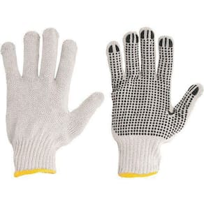 Luva de malha 3 fios branca pigmentada encartelada vonder - Descrição: Proteção das mãos do usuário contra agentes abrasivos, escoriantes, cortantes e perfurantes. Luva de segurança tricotada em três fios de algodão, pigmentos de pvc na palma e nos dedos, acabamento em overloque e punho com elástico em poliéster. Certificados: - número do certificado de aprovação - ca: 38876 - número do certificado de aprovação - ca: 38879 Conteúdo da embalagem: 1 par de luvas. Características gerais do produto: : 90 dias de fabricante
