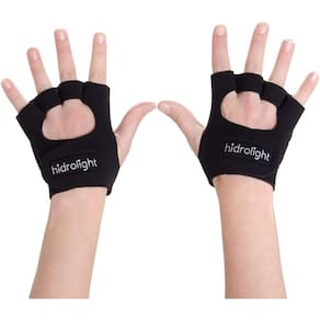 Posicione o produto na mão encaixando os dedos nos orifícios. Ajuste a compressão desejada através da aba com fecho aderente no dorso, mantendo a parte emborrachada (shark skin) na região da palma.