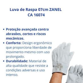 Adquira já sua Luva de Raspa 07cm ZANEL CA 16074 e garanta proteção, segurança e durabilidade para suas atividades profissionais!