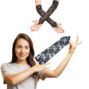 Luva de Renda Longa com Gancho de Dedo - Festa Fantasia Casamento Show Dança.