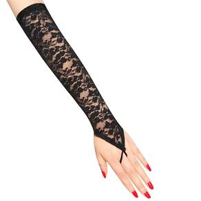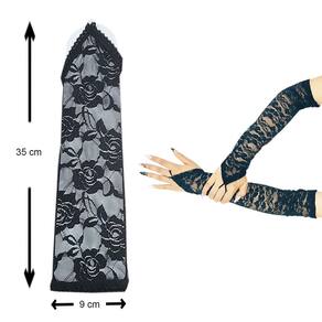 Luva de Renda Feminina Longa Gancho de Dedo Fantasia Festa Casamento Show Dança - Preto - Único