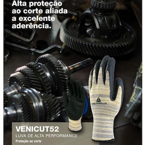 Produto: Luva de segurança anti-corte e proteção alta temperatura - Venicut 52 Marca: Delta Plus Tamanho: GDescrição: Desenvolvida com fibra de alta performance HEATnocut a Luva de segurança anti-corte e proteção alta temperatura Venicut 52 da Delta Plus possui ótima resistência ao corte. O revestimento corrugado da palma proporciona excelente aderência para preensão dos objetos . Além disso, possui excelente resistência ao rasgo EN388 3X42D e calor de contato de até 250 °C EN407 X2XXXX . Características: Fibra HEATnocut• Resistência máxima ao corte• Alta resistência à abrasão• Resistente ao calor de contato: até 250 °C Revestimento corrugado na palma• Excelente aderência para preensão dos objetos ótima resistência ao corte• D CA 36.007• Aprovada para proteção das mãos contra agentes abrasivos, escoriantes, cortantes, perfurantes e térmicos calor de contato .Especificações: Composição: Polietileno de alto peso molecular HPPE , para-aramida AR e borracha natural NR: 2-metilbut-1, 3-dieno CA: 36.007cor: Preta e amarela Comprimento: 25cmTamanho: 9 - G. Marca: Não Informado