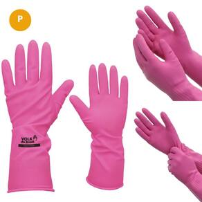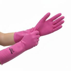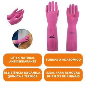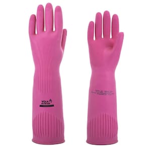 Luva de Segurança Látex Natural Cano Longo Antiderrapante Ranhurada Volk - 9 (G)-Rosa