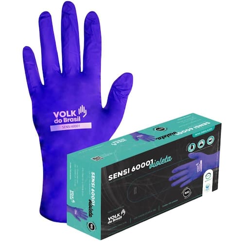 Luva de Segurança Nitrílica Descartável Sensi 60001 Violeta - Volk do Brasil