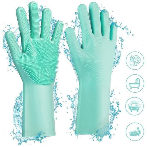 Luva de Silicone Lava Louça Mágica da Commerce Brasil tem múltiplas funções como lavar a louça da pia, limpeza de banheiro, lavagem de automóveis, dar um banho no seu cachorro etc., fabricada em 100% silicone também permite pegar panelas e alimentos quentes protegendo as suas mãos.