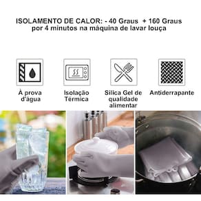 Perfeita para lavar pratos, copos e louças, além de proteger sua mão possui cerdas de silicone que funcionam como uma esponja e geram espuma na lavagem;