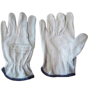 Marca: Extremo Sul. CA 20601. Material: Dorso em couro bovino tipo raspa, palma em couro tipo vaqueta. Características: Reforço palmar interno, elástico embutido no dorso, acabamento em viés. Costura: Linha de nylon.