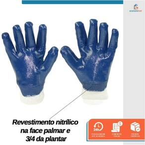 Características técnicas: Confeccionada em malha de algodão tricotada em uma só peça. Revestimento nitrílico na face palmar e 3/4 plantar. Punho elástico. Certificado de aprovação: CA Nº 49.476. Tamanho: 8/M. Cores: Palma, ponta dos dedos e parcial dorso azul, e parcial dorso e punho bege. Normas técnicas: EN 407:2004, BS EN 388:2016 + A1:2018, ISO 21420:2020 Níveis de desempenho: 3211X, X1XXXX Ref.: 7971257 Marca: Starfer
