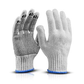 Distribuído por: Casa das SerrasCA 36.520Luva tricotada em dois fios de algodão com pigmentos em PVC na palma e punho elástico.- Fios 100% algodão;- PVC pontilhado nas palmas para melhor aderência evitando cortes feitos por arestas, papel e etc;- Excelente flexibilidade, conforto e bom tato.Especificações Técnicas:TAMANHO: 9