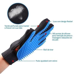 Luva Escova Nano Magnética Tira Pelos Dos Pets Cães E Gatos Luva Escova Nano Magnética Tira Pelos Dos Pets Cães E GatosEsta Luva Mágica para os seus Pets você pode ficar tranquilo enquanto acaricia seu amigão e removendo o excesso de pelos do dog. Ao contrário das tradicionais escovas e luvas, com a Luva Magnética seu animalzinho não se assustara ou tentara fugir, fica muito mais fácil cuidar do pelo dele, e consequentemente você não terá pelos espalhados pela casa, ou apartamento, pra quem é alérgico(a) e não pode ter pelos pelo sofá, essa é a luva que irá limpar seu Pet, gerando mais saúde, um ambiente mais saudável.Imita o toque de sua mão para uma massagem para seu pet; Possuí 180 pontas de silicone, que potencializam em 100X a eficiência. Os pelos aderem à luva pelo magnetismo, tornando mais fácil pegar e jogar fora o pelo do seu animal de estimação.Mantenha sua casa limpa com as Luva Nano Magnética para os Pets, minimizando o caimento de pelos de cães e gatos. Removedor de pelos para animais de estimação para todos os tamanhos e raças, independente da quantidade de pelos.Tamanho único, ajustável para vários tamanhos de mão. Material: Borracha Indicado para: Cães, gatos e outros animais de estimação. Tamanho: ÚnicoDiâmetro de cerca de 6 CMComprimento cerca de 7.5 CMQuantidade: 1 Peça
