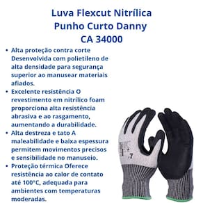 Adquira agora a sua Luva Flexcut Nitrílica Punho Curto Danny CA 34000 e garanta proteção superior contra cortes com alta destreza para suas mãos!