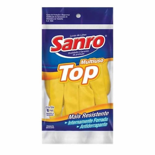 As luvas Sanro Top Multiuso conferem proteção às mãos dos usuários para tarefas mais pesadas, que exigem maior segurança. São internamente forradas com flocos de algodão, com ótimo calçamento, pois também são cloradas. Dispensam o uso de talco, tem um grande conforto, ótima maleabilidade, além de serem antiderrapantes.
