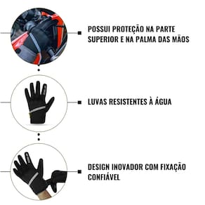Pilote na certeza de que suas luvas mantêm as mãos aquecidas, secas e com grip superior, graças ao design funcional e ajuste reforçado, garantindo controle absoluto mesmo em condições adversas.