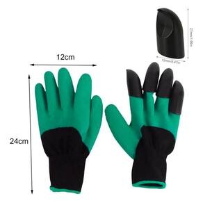- Cor: Verde.- Material: Latex borracha e plástico ABS garras .- Tamanho único: 24 x 12cm.Marca: garden Glove