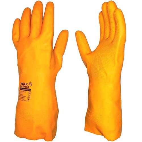 DescriçãoLuva de segurança confeccionada em látex natural, revestimento interno em flocos de algodão, relevo antiderrapante na face palmar e face palmar dos dedos.EspecificaçõesCa: 37815Resistência mecânica - en388 - desempenho 2111xResistência térmica calor en407 - desempenho x2xxxxResistência química - en374 - desempenho a2b1c1i1k6l4m6n3o5p6t6Comprimento: 30cmTamanhos: 7 p 8 m 9 g 10 eg Espessura: 0,70mmUso: reutilizávelFormato: anatômicoEstrutura: sem suporte têxtilAcabamento interno: flocadoPunho: retoGrip: colmeiaEmbalagem: pacote com 12 pares, caixa com 144 paresVantagens e benefíciosÓtima resistência e durabilidade - confecionada em borracha naturalMaior proteção - espessura superior comparada a outras luvas multiusoConforto e absorção do suor - proporcionado pelo forro em algodãoAntiderrapante - em formato colmeia, permite aderência na manipulação de objetos molhados. Boa aderência também em superfície seca. Alto padrão de resistência a abrasãoFormato anatômico - redução da fadiga muscularPunho reto - permite maior ventilação, além disso, evita que materiais fiquem impregnados no punho da luvaRedução de custos - luvas laváveis e reutilizáveis. Aumenta consideravelmente o ciclo de vida da luva e reduz os custos da empresaAplicaçõesIndicada para trabalhos gerais médios e severos, protegendo o trabalhador contra agentes químicos. Utilizada nos setores operacionais de indústrias químicas, automotivas, alimentícias, frigorífica aves, suínos, pesca e bovinos , higiene e limpeza, saneamento, metalmecânica, naval, construção civil, uso doméstico e outras. Este produto contém látex de borracha natural, seu uso pode causar reações alérgicas em pessoas sensíveis ao látex.Potenciais clientesIndústrias alimentícias, frigoríficas, saneamento básico ete/eta , serviços de conservação e limpeza, jardinagem e paisagismo, agricultura, construção civil, indústria metalmecânica, automotiva, industrias químicas e outros.Marca: volk do brasilCa:37815Código: 10.53.071.05