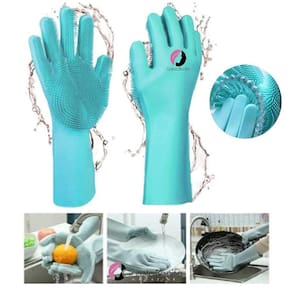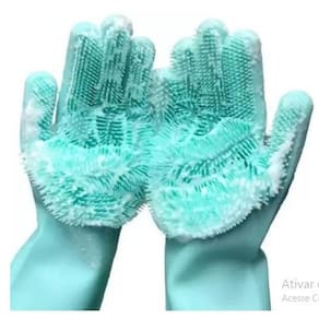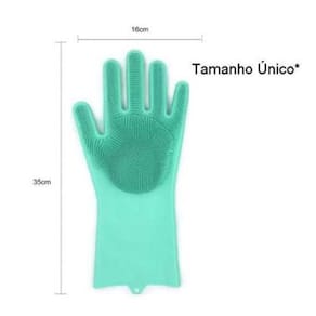 - Material: Silicone - Dimensões: 32 x 15 x 1 cm - Tamanho único - Resistentes à água quente - Protege as mãos - Podem ser usadas para lavar banheiro, fogão, louça, automóvel e até para banhar os pets - Use-as também para tirar pratos quentes do forno - Possui Elasticidade As luvas possuem cerdas de silicone que são fáceis de higienizar, não riscam, não acumulam germes e duram muito mais que uma bucha. Além disso, você vai economizar tempo lavando pois ambas as luvas possuem cerdas. -as luvas de silicone podem ser utilizadas em qualquer lugar que você faz uma limpeza. Estas luvas mágicas de limpeza podem ser usadas para lavar louça, limpar frutas e vegetais, fazer a limpeza doméstica e até fazer a lavagem do carro.