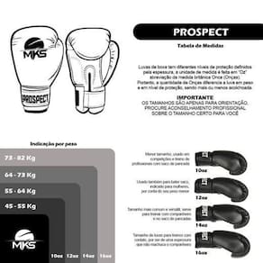 Luva Mks Boxe Prospect - Preto Tamanho: 16oz Boxe, Muay Thai ou Kickboxing: não importa qual arte marcial você decida fazer, é necessário ter luvas de qualidade, que te proporcionem segurança e conforto. A linha New Prospect MKS traz tudo isso por um valor justo e acessível Fabricadas em PU (poliuretano), é resistente a rasgos e tem grande elasticidade, além de resistência. Tem camada extra de espuma, tornando-se uma opção confiável e ajudando a reduzir riscos de lesões, proporcionando conforto e segurança aos atletas. Material: Poliuretano Marca: Mks Combate