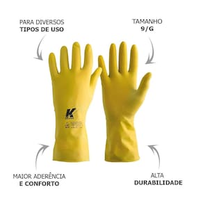 Contém: 1 par de Luvas Multiuso Látex Amarela 9/G Kalipso