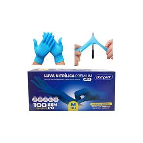 Luva Nitrílica Comfort Azul Sem Pó Bompack Tam M C/100 Un