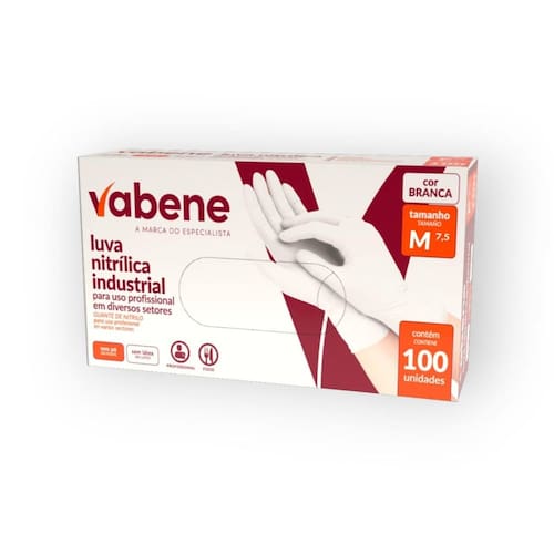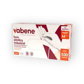 Luva para procedimentos não-cirúrgicos, de segurança e proteção, confeccionada em borracha nitrílica sintética 100% nbr sem pulverização interna de pó bio absorvível amido de milho , não esterilizada embalada, livre de látex, superfície texturizada nas pontas dos dedos, hipoalergênica, ambidestra de uso único. Tamanho m, cor branca. Contendo 100 unidades 50 pares . Ca nº 44146