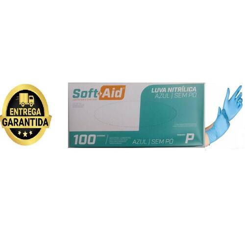 Luva nitrilica sem pó tamanho p cor azul soft+aid 100un