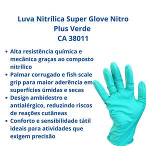 Luva Nitrílica Super Glove Nitro Plus Verde CA 38011 Proteção e Sensibilidade para Profissionais