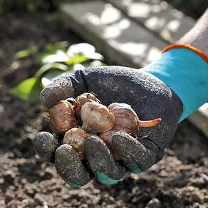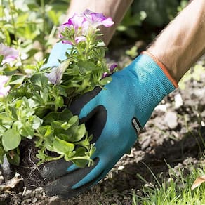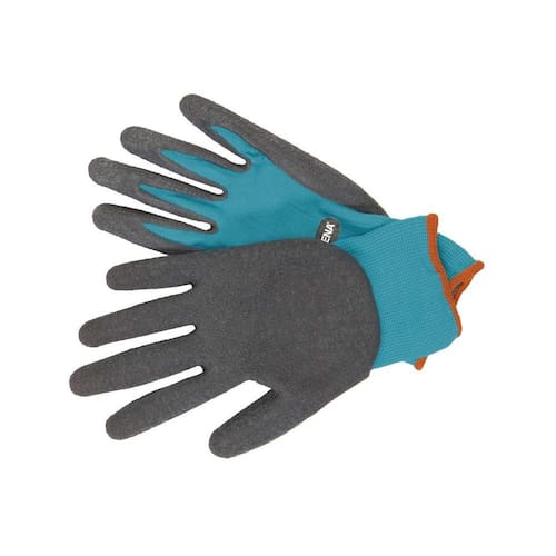 As Luvas de Jardinagem e Solo Gardena oferecem uma proteção especial para as tarefas mais exigentes e também em caso de umidade. O revestimento de látex repelente de água sobre as palmas e os dedos garante uma aderência perfeita durante o trabalho. O látex também assegura que as suas mãos permanecem secas e limpas, mesmo ao plantar em terrenos úmidos. O reforço dos dedos protege de sujeira e umidade e permite trabalhos delicados com plantas e solo. Materiais selecionados e costuras elásticas garantem conforto e respirabilidade. Acabaram-se as mãos suadas!