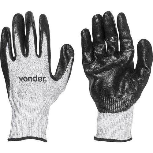 Luva Poliester/fibra De Vidro Resistente à Corte - Vonder Conteúdo da embalagem 1 Par de luvas Aplicações e dicas de uso Indicada para proteção das mãos no manuseio de peças cortantes ou com rebarbas, manutenções industriais, indústria metal-mecânica, indústria de vidros e trabalhos que exijam aderência com excelente tato e proteção contra cortes Destaques e diferenciais Tricotada em fios de polietileno de alta densidade e fibra de vidro, revestida em látex nitrílico na palma, na face palmar dos dedos e nas pontas dos dedos, além de punho em elastano e poliéster com acabamento overloque. Em conformidade com a norma EN 388. DETALHES TÉCNICOS