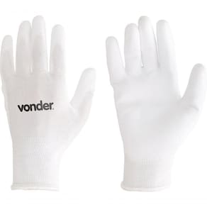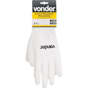 Palma e dedos em poliéster com revestimento em poliuretano e dorso e punho em poliéster