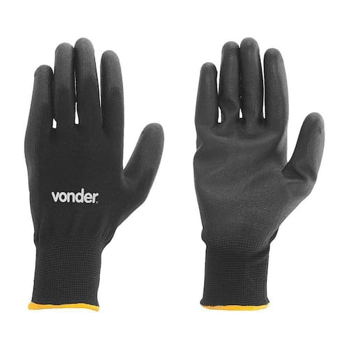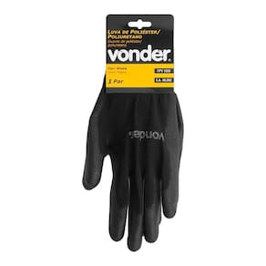 Informações do produto: Luva de Poliéster com Poliuretano. Preta. Tamanho 9. PPV 1009 - 70.25.100.009 Indicada para proteção das mãos no manuseio de ferramentas e eletrônicos. Logística. Agroindústria e trabalhos que exijam aderência com excelente tato Luva de proteção tricotada em fios de poliéster. Revestida de poliuretano nos dedos e na palma. Acabamento overlock e punho em elástico Material da luva 97.82% Poliéster e 2.18% Elastodieno Tamanho da luva 09 Garantia - E (CDC) Garantia legal: 90 diasConteÚdo da Embalagem: - 1 Par de luvas de poliéster com poliuretano.