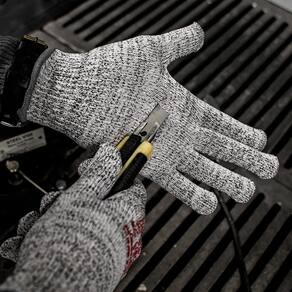 Luva Proteção Anti-corte Resistente SegurançaQuem nunca se cortou manuseando facas ou raladores durante o preparo de algum alimento É um incômodo que você não terá mais com a Luva de Proteção Anti-Corte.Ela é de altíssima qualidade o que garante elevada proteção contra o risco de cortes e ferimentos que possam ser causados durante o manuseio de facas, cortadores, raladores e fatiadores.Feita de HPPE polietileno de alto desempenho combinado a fibra de vidro resulta em um tipo de tecido tecnológico e inovador permitindo níveis mais altos de resistência ao corte e ao mesmo tempo, maior tato, destreza e sensibilidade.O elastano garante o ajuste para ambas as mãos, tanto direita quanto esquerda. Além disso é fácil de limpar, pode ir à máquina de lavar roupa até 30C e pendurada para secar.Saiba que é um prazer vê-lo por aqui e esperamos que nosso produto atenta às suas expectativas. Abaixo mais detalhes:FICHA TÉCNICA:Conteúdo: 1 Par de LuvasTamanho: 24 X 12 cmComposição: 67% HPPE; 20% Poliéster; 10% Fibra de Vidro, 3% ElastanoCor: CinzaProduto