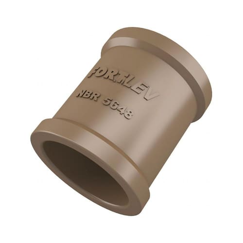 A Luva Soldável Fortlev é composta por PVC na cor marrom, suporta até 7,5 Kgf/cm ou 75 m.c.a. à temperatura de 20C.