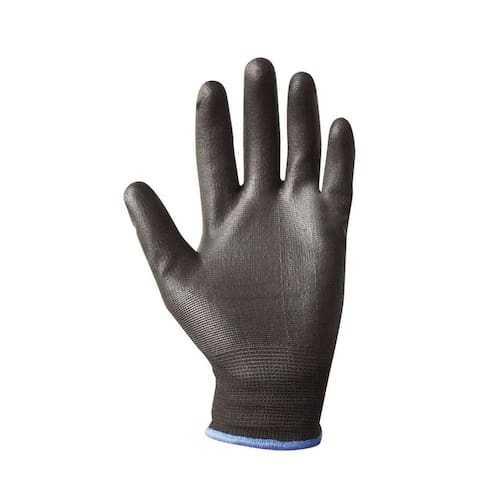 - Descrição: luva de segurança tricotada com fios de poliéster, revestimento de poliuretano na palma, face palmar e ponta dos dedos. Punhos tricotados com acabamento em elástico;