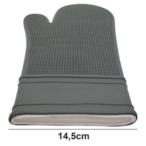 - Proteção térmica com resistência a temperaturas de até 230C e mínima de -40C - Superfície antiderrapante e impermeável para maior aderência e segurança - Versátil para uso em forno, fogão, churrasqueiras e panelas quentes - Fácil de limpar, não retém sujeira e pode ser lavada com praticidade - Material: Silicone e poliéster - Dimensões aproximadas: 35 x 14,5 cm