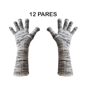Possui 12 pares de luvas tricotadas 6 fios punho longo reforçadas.