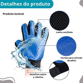 Luva ultra flexível - a melhor opção para seu pet Descrição do anúncio: A escova luva tira pelo cachorro e gato pet pente pinos azul é ideal para manter seu animal de estimação limpo e confortável. Esta luva mágica possui cerdas de silicone macias que removem os pelos soltos enquanto massageiam seu pet, sem causar . Seu design ergonômico permite uma utilização fácil e eficaz, imitando o toque da mão para proporcionar uma experiência agradável tanto para cães quanto para gatos. Além disso, sua cor azul adiciona um toque divertido ao momento do cuidado. A luva é especialmente recomendada para animais de pelagem longa e ajuda a manter a casa limpa, minimizando a queda de pelos. Conteúdo da embalagem: 1 unidade de luva tira pelo tamanho único para mão direita Caracteristícas: Luva mágica para remoção de pelos com massagem 180 pontas de silicone para maior eficiência Aderência dos pelos por magnetismo Design ergonômico que simula o toque das mãos Adequada para todos os tamanhos e raças de cães e gatos Pode ser utilizada a seco ou durante o banho Especificações: Material: silicone tpr e poliéster Cor principal: azul e preto Indicado para: cães, gatos e outros animais de estimação Tamanho único, ajustável para vários tamanhos de mão Dimensões: 17 cm de largura x 23 cm de comprimento escova luva 18 cm de largura x 28 cm de comprimento luva massageadora magnética Principais perguntas sobre o produto e respostas: A luva é adequada para todos os tipos de pelagem Sim, a luva é eficaz para todos os tipos de pelagem, especialmente para animais de pelagem longa. A luva pode ser Utilizado durante o banho Sim, a luva pode ser utilizada tanto a seco quanto durante o banho. Como a luva remove os pelos A luva possui 180 pontas de silicone que, com o auxílio do magnetismo, atraem e prendem os pelos soltos, facilitando sua remoção e descarte. O material da luva é seguro para os animais Sim, a luva é feita de silicone tpr e poliéster, materiais seguros e confortáveis para o uso em animais de estimação. A luva serve em qualquer tamanho de mão Sim, a luva possui um tamanho único ajustável, adequado para vários tamanhos de mão. A luva é eficaz para reduzir a queda de pelos Sim, ao remover os pelos mortos, a luva ajuda a reduzir a queda de pelos, mantendo o ambiente mais limpo e saudável. Marca: Não Informado