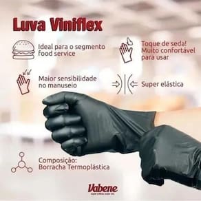 As Luva Viniflex Preta Vabene - Caixa com 100 unidades possuem o melhor custo beneficio do mercado, além de confortável e resistentes são ótimas opções para substituir as luvas de vinil tradicional em algumas atividades. São indicadas para uso na gastronomia, limpeza, salões de beleza, entre outros.