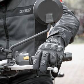 Luva X11 Blackout 2 Masculina Preta GG Tamanho: GG Continuando a estrada de sucesso da sua predecessora, a Blackout 2 traz um novo protetor de articulação, mais moderno e com melhor performance, Mantendo o DNA que revolucionou o mercado de luvas para motociclistas do Brasil. não é a toa que a Blackout está a vários anos presente na linha de luvas da X11. Sucesso de vendas em todo o Brasil, o modelo para uso diário ou para viagens, se destaca por ser leve, versátil e com excelente proteção, devido a sua composição de materiais resistentes à abrasão e o seu protetor rígido. uma luva leve e arejada, com ótimo caimento, que serve para diversos ambientes de pilotagem (desde deslocamento urbano, até uso em estradas). com custo acessível e muita proteção, sua versatilidade e seu sucesso é facilmente mensurado na quantidade de luvas vendidas, tempo do ciclo de vida (duração no mercado) e na quantidade de unidades circulantes em todo o Brasil... basta olhar para os motociclistas ao seu redor e sem dúvidas verá uma destas nas mãos de um. Luva cano curto; Tecido poliéster; Proteção rígida em polipropileno injetado; Proteções em borracha na palma e nos dedos; Reforço em borracha no dorso da mão; Reforço entre os dedos; Silicone nos dedos; Função touch screen no polegar.