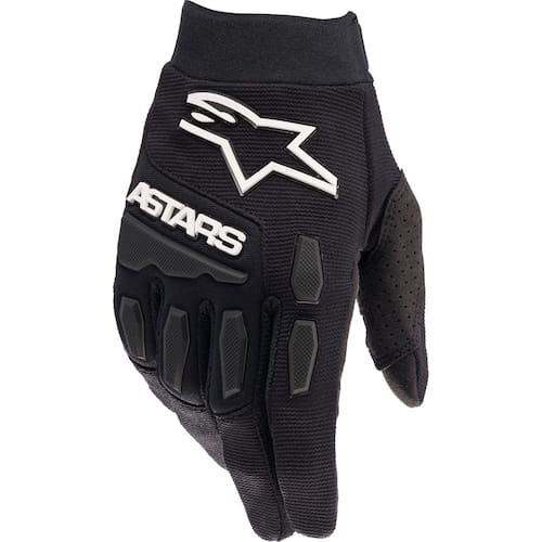 Alpinestars Luvas Full Bore Preto/Branco Md (3563622-10-M) - Palma de camurça sintética para altos níveis de durabilidade e aderência - Estampa de silicone na ponta dos dedos para aderência otimizada com os controles da bicicleta - Fourchettes elásticas para níveis ideais de conforto e flexibilidade - Emblemas de polegar reforçados para maior durabilidade e resistência à abrasão - Punho elástico para um ajuste otimizado com um fecho de alça para segurança