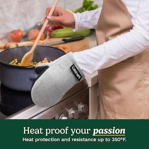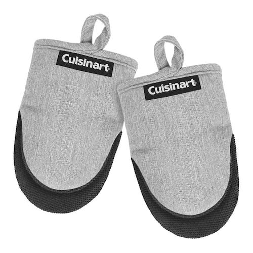 Cuisinart Mini luvas de forno – luvas de cozinha resistentes ao calor de 14 x 18 cm para forno com palma de neoprene antiderrapante, enchimento de algodão e laço de tecido – Conjunto de luvas de forno - Proteção ideal contra o calor: estas mini luvas de forno são projetadas com uma palma de neoprene antiderrapante que oferece aderência segura e alta resistência ao calor (até 350 graus). Se você estiver puxando um prato quente do forno ou manuseando uma panela escaldante, essas luvas fornecem proteção essencial para todas as suas necessidades de cozinha e cozimento. - DESIGN CONFORTÁVEL E AMBIDEXTROSO: Medindo 14 x 18 cm, estas pequenas luvas de forno oferecem um ajuste confortável com um design ambidestro, tornando-as um acessório de cozinha prático para todas as suas tarefas de cozinhar e assar. - Escolha de presente perfeita: encante seus entes queridos com estas luvas de forno elegantes e práticas. Ideal para inauguração de casa, chás de panela ou presentes de casamento, eles adicionam um toque encantador a qualquer decoração de cozinha. Com uma variedade de cores disponíveis, elas são uma adição cuidadosa e funcional a qualquer item essencial de cozinha. - Conforto e durabilidade: o enchimento 100% algodão oferece às nossas luvas de forno maior conforto e proteção extra contra o calor. Construídas com materiais de alta qualidade, estas luvas de forno de alta temperatura são feitas para durar, tornando-as uma escolha confiável para uso diário em sua cozinha e atividades de panificação. Além disso, são fáceis de lavar à mão e limpar no local, garantindo que permaneçam frescas e prontas para cada sessão de cozimento. - Uso multifuncional: não apenas para assar e cozinhar, estas mini luvas de forno também funcionam como suportes de panela para tarefas de cozinha. O laço de tecido permite pendurar e armazenar facilmente, enquanto a estrutura durável significa que eles podem lidar com panelas quentes, frigideiras e até mesmo panelas de ferro fundido com facilidade.