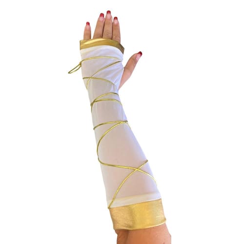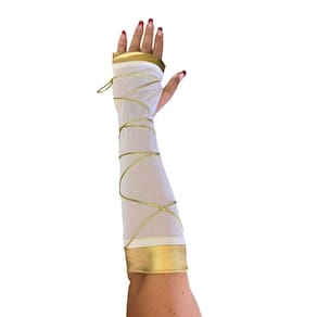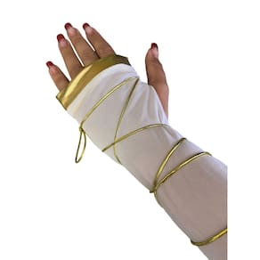 Luva estilo grega com branco e dourado. Ideal para complementar sua fantasia.brbrum detalhe que faz a diferença.brbrutilize como um complemento e solte a imaginação.brbrconteúdo da Embalagem:brbrDimensões Aproximadas:brbrComprimento: 35 cmbrbrComposição do Produto:brbrPoliéster