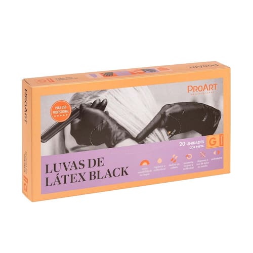 As Luvas de Látex Black são ideais para profissionais que trabalham com processos e produtos químicos, colorações, alisamentos, relaxamentos e botox capilar. Elas também podem ser utilizadas durante a lavagem dos fios ou aplicação de cremes, loções, tônicos e outros tratamento capilares. Instruções de Uso: 1. Antes de calçar as luvas, lave e seque bem as mãos. 2. Mantenha as unhas aparadas 3. Para calçar as luvas, dobre o punho para fora e segure firme, encaixe os dedos na abertura e acomode nos espaços correspondentes, puxe a luva e arrume ambos os lados até que a mão e o punho estejam protegidos. Encontre o tamanho ideal medindo a largura dos quatro dedos fechados a partir do final do dedo polegar. P:7CM M:8CM G:9CM Advertências: Produto fito de látex natural preto, pode causar alergias em pessoas sensíveis ao componente; Aumento do risco de acidente caso o produto seja utilizado na operação de equipamentos, máquinas ou atividades com partes móveis. Após uso, lave em água correente e deixe secar naturalmente. Maior sensibilidade ao toque Higiênica e confortável Desliza no cabelo Resistente, lavável e reutilizável Dispensa o uso de talco e amido Ambidestra Ean: 731509990362