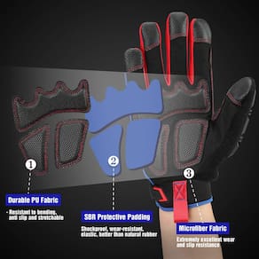 WORKPRO Luvas de trabalho resistentes, luvas de trabalho masculinas de proteção contra impactos de couro sintético, proteção de PVC, tela sensível ao toque, tecido felpudo, antiderrapante, grande - Material: O tecido traseiro das luvas de trabalho resistentes é um tecido composto de poliéster, que tem maior resistência e resistência ao desgaste mais forte do que o tecido de elastano de outras luvas. O tecido de proteção 3D de PVC na parte de trás da mão pode suportar impactos maiores - Tela sensível ao toque: o design da tela sensível ao toque nas pontas dos dedos é mais considerado e a operação da tela sensível ao toque pode ser realizada sem tirar as luvas, o que é mais conveniente e rápido - Design atencioso: o tecido felpudo macio na parte de trás do polegar pode facilmente limpar o suor durante o trabalho. A alça de pulso ajustável no pulso faz com que a luva se ajuste melhor à sua mão, facilitando o trabalho - Design Plam: o tecido SBR da palma da mão é à prova de choque, resistente ao desgaste, elástico, melhor do que a borracha natural, e a superfície de microfibra é respirável, resistente ao desgaste, antiderrapante e de textura macia, que pode atender perfeitamente a qualquer necessidade - Multifuncional: Luvas de trabalho de tamanhos diferentes perfeitas para ferramentas elétricas, construção, motociclismo, trabalhos pesados táticos e DIY que exigem maior proteção