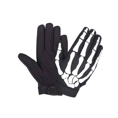 Luvas mecânicas masculinas com design de esqueleto, pretas, tamanho pequeno