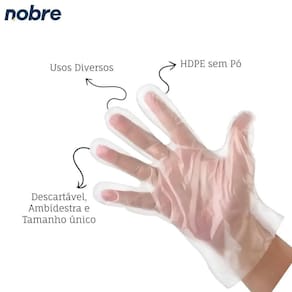 As luvas plásticas descartáveis HDPE Nobre foram desenvolvidas para oferecer segurança em atividades rápidas que exigem higiene e cuidado. Com modelagem ambidestra e tamanho único, se ajustam facilmente às mãos, garantindo versatilidade para diferentes usos.