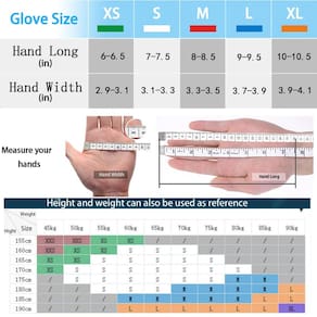 - Disponível em quatro tamanhos, de S a XL, consulte a tabela de tamanhos para medir sua mão e obter o tamanho certo para você