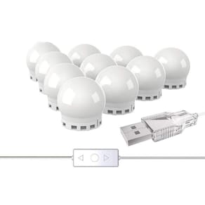 Luz de espelho com led camarim maquiagem 10 lampadas 3 cores Transforme seu espelho comum em um camarim - é composto por 10 lâmpadas de led em um fio com instalação super fácil e acabamento discreto, cada lâmpada é fixada por fita 3m que adere à espelhos, vidros, madeira, parede, entre diversas outras superfícies. A mesma é alimentada via usb e possui 3 tons de cor branco frio / branco quente / neutro podendo também ser regulada a intensidade da cor, tudo através do seu controle na extensão do cabo. - a extensão de lâmpadas chega até 2,4 metros podendo ser utilizada em espelhos com essa medida total somando os lados. As lâmpadas ainda possuem regulagem de distância entre elas. - não necessita de instalações complicadas - alimentação via usb - 3 tons de cor branco frio, branco quente e neutro - perfeita para iluminação de maquiagem, selfies, gravação de vídeos - pode ser usada como decoração Especificações: - extensão do fio: 2,4 metros de extensão de lâmpadas / 2,19 metros de fio. - espaço entre lâmpadas: regulável de 4cm à 24cm. - quantidade de lâmpadas: 10 - medidas das lâmpadas: 5,5cm x 4cm - potência: 16w 1.6 x 10 - alimentação: usb 5v / 2a Itens inclusos: 01 x fio com 10 lâmpadas
