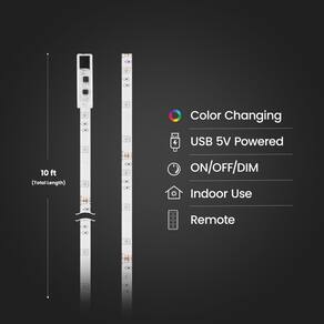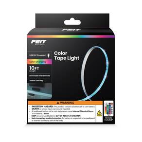 Feit Electric Fita de luz LED colorida de 3 metros, regulável, cor RGB com controle remoto, design cortado para ajuste, iluminação de tela alimentada por USB de 5 V, somente uso interno, vida útil de